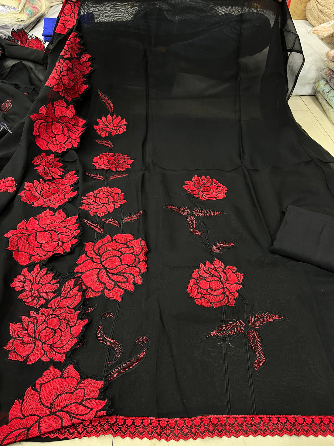 Organza Shirt with Dubai Cutwork Embroidery, Chiffon Dupatta & Shantoon Bottom