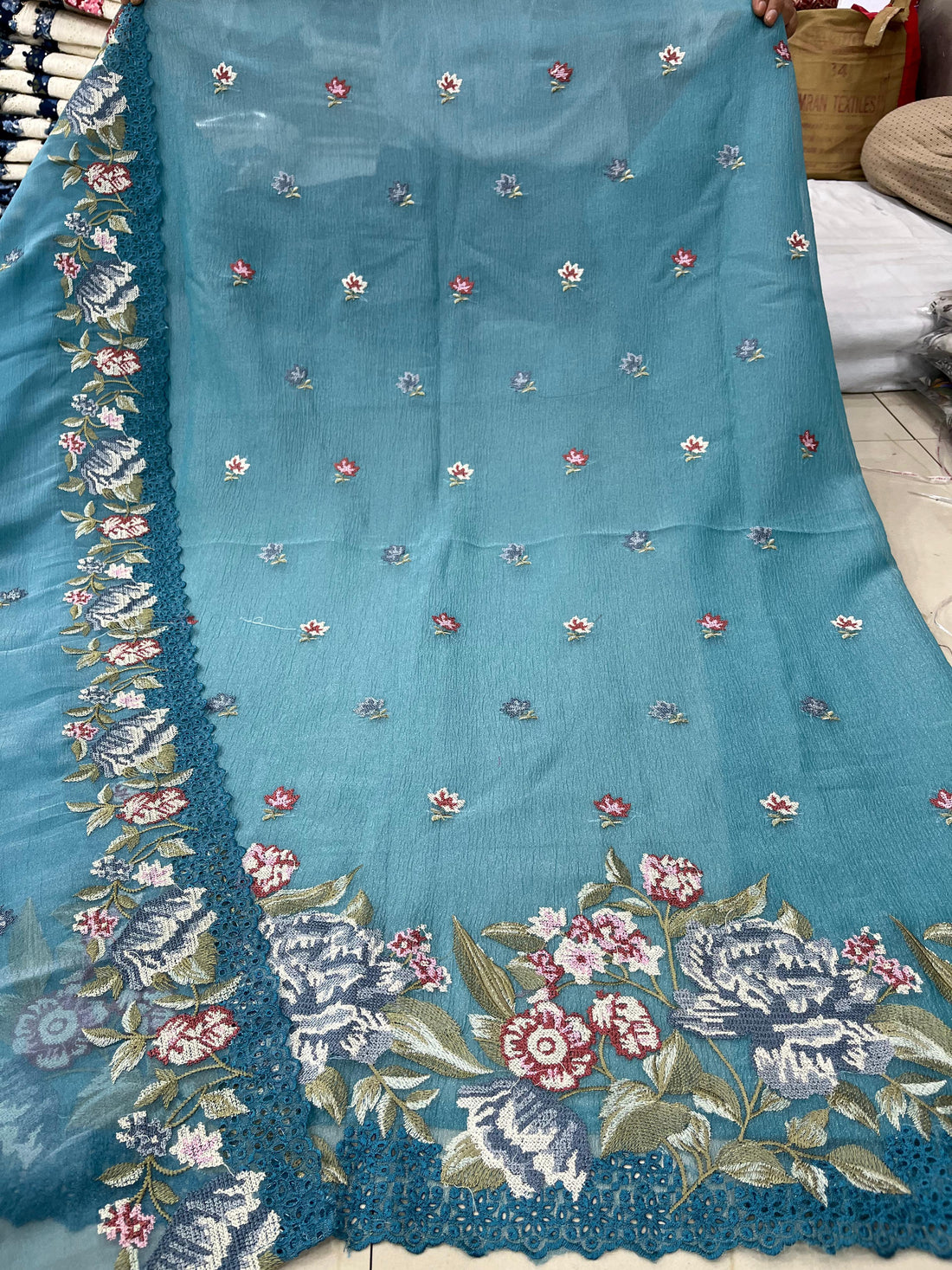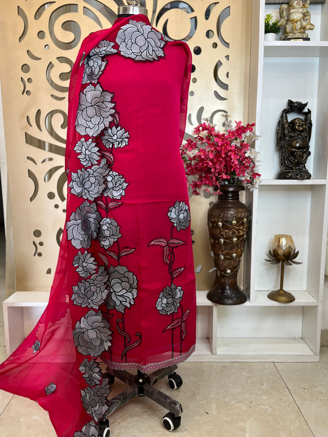 Georgette Embroidered Suit with Rayon Bottom & Georgette Embroidered Dupatta